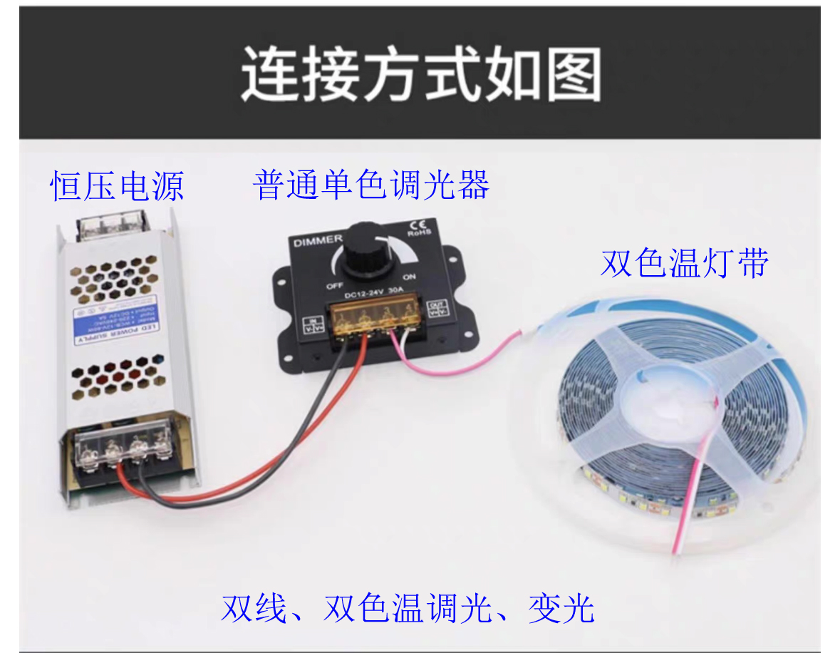 調光程度小時,此時表現為暖白色;隨著調光程度逐漸變大,此時表現為暖白色和冷白色混光;繼續增大調光程度,此時表現為冷白色。