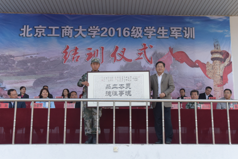 黨委副書(shū)記張德玉代表學(xué)校向承訓(xùn)部隊(duì)和北京康莊611軍訓(xùn)基地分別贈(zèng)送了由2016級(jí)學(xué)生書(shū)寫(xiě)、包含2000多名學(xué)生簽名的兩幅書(shū)法作品,表達(dá)誠(chéng)摯謝意。